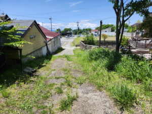 ![]() 南道路より敷地をみる |